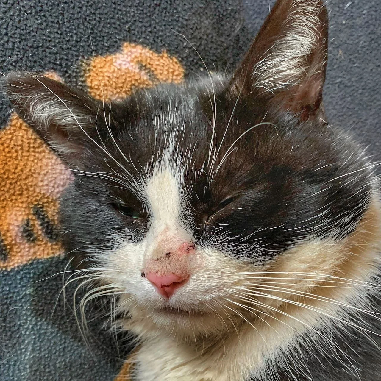 Around two years ago a large, stocky black and white cat appeared out of nowhere in our garden. he was wary of us and would run off if approached. When we did get close to him it was apparent that he was quite ‘bruiser’. Heavy set, slightly unkempt fur and a well scratched nose and nicks to his ears; this was either a stray or feral tomcat. A very ‘intact’ tomcat.