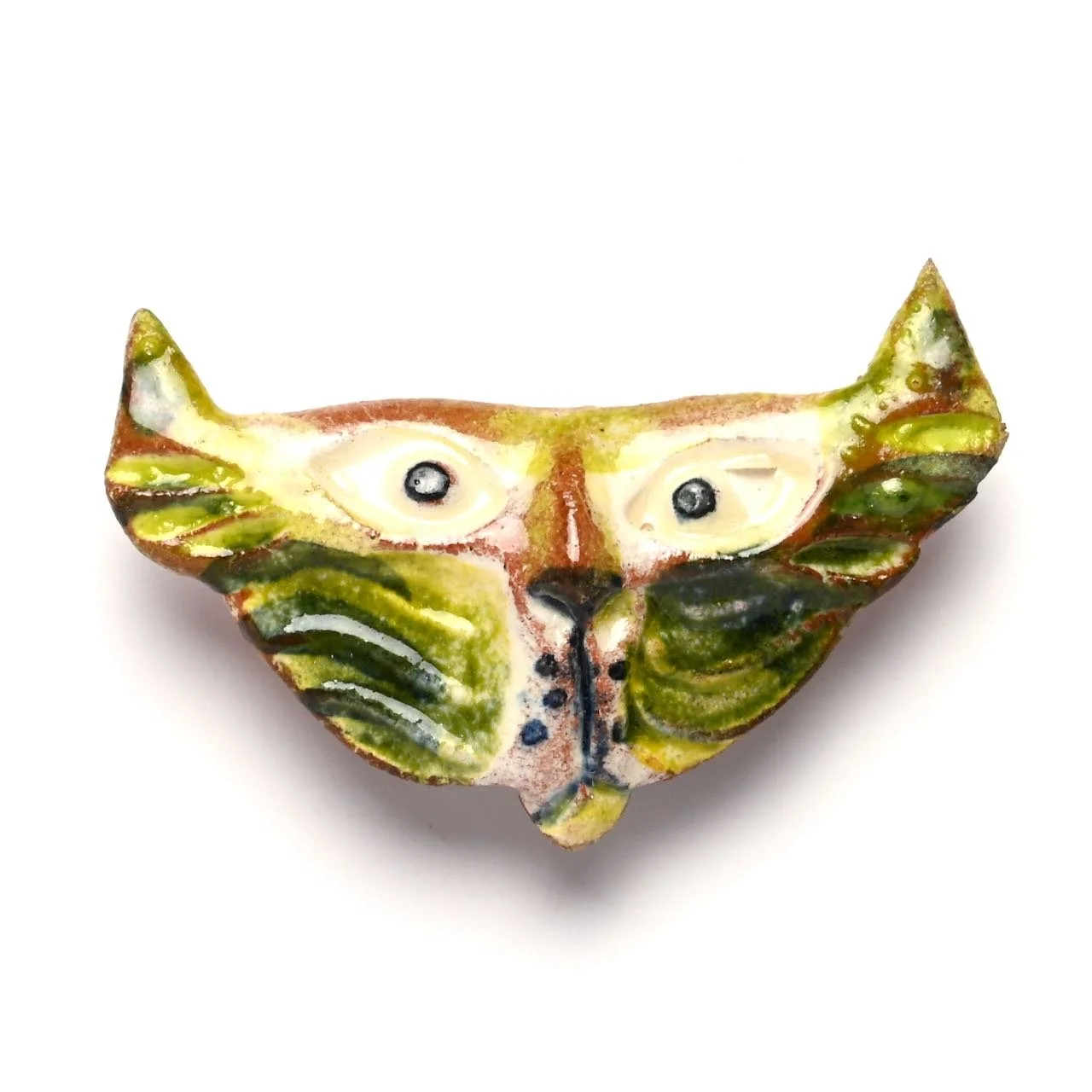 An original hand-modelled ceramic brooch by Jeremy James. This is a unique piece made by Jeremy James in his Derbyshire studio. Pin or button clasp on the reverse.