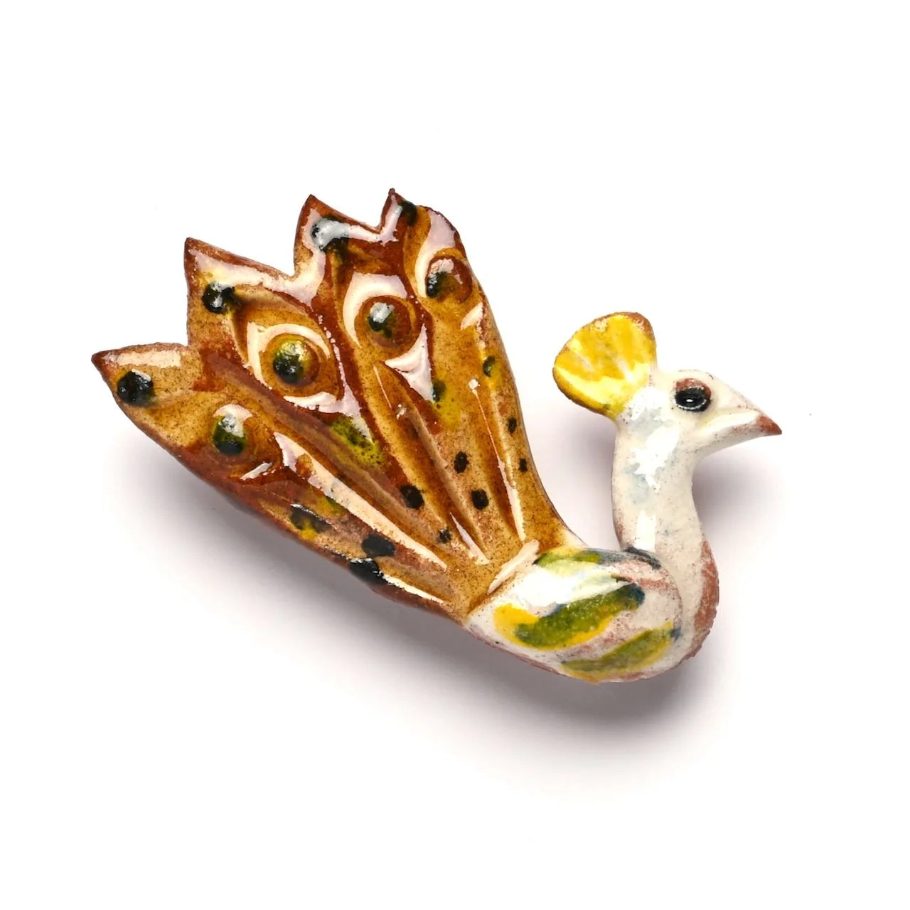 An original hand-modelled ceramic brooch by Jeremy James. This is a unique piece made by Jeremy James in his Derbyshire studio. Pin or button clasp on the reverse.