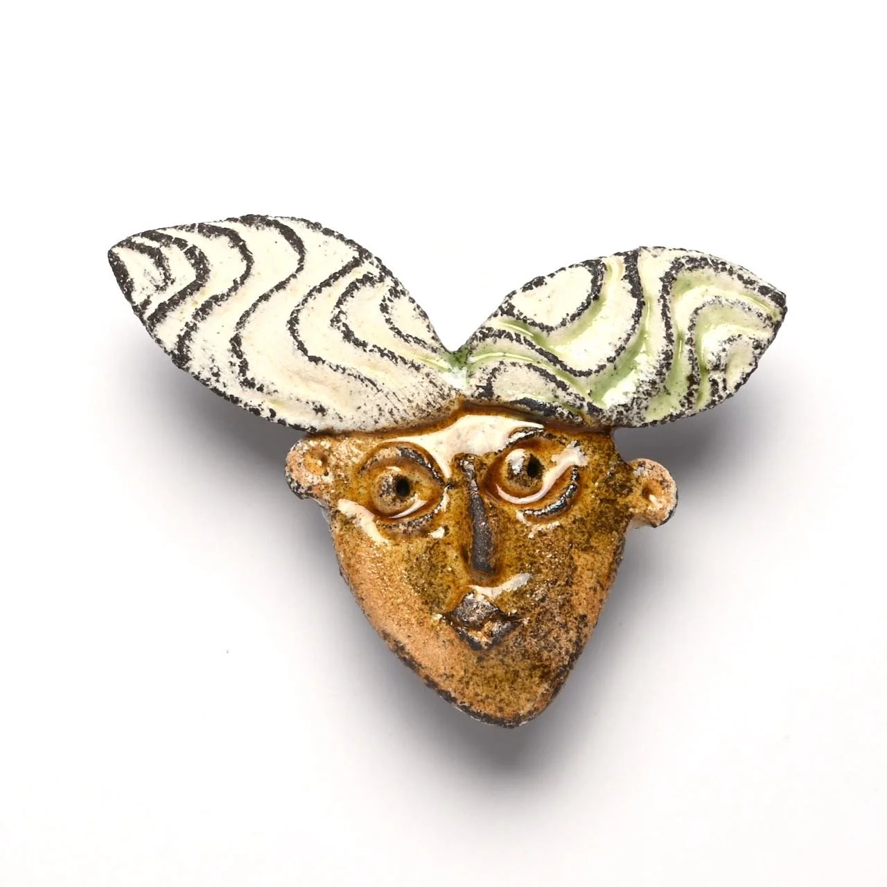 An original hand-modelled ceramic brooch by Jeremy James. This is a unique piece made by Jeremy James in his Derbyshire studio. Pin or button clasp on the reverse.
