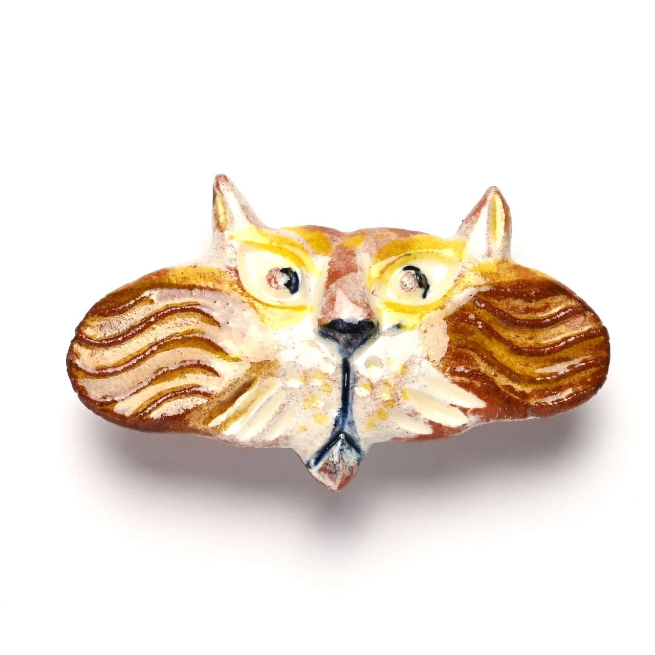 An original hand-modelled ceramic brooch by Jeremy James. This is a unique piece made by Jeremy James in his Derbyshire studio. Pin or button clasp on the reverse.