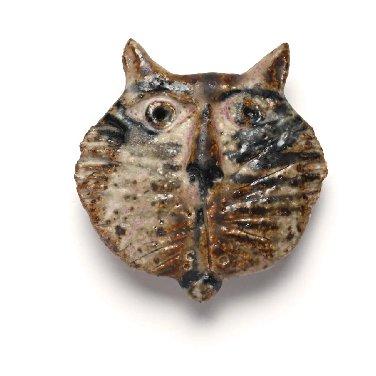 An original hand-modelled ceramic brooch by Jeremy James. This is a unique piece made by Jeremy James in his Derbyshire studio. Pin or button clasp on the reverse.