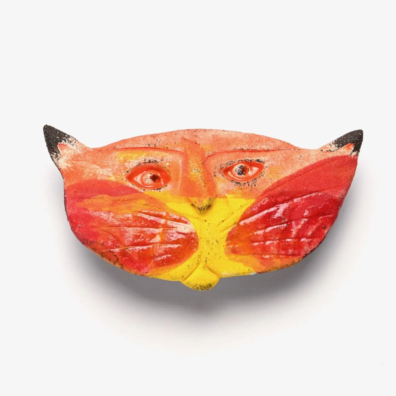 An original hand-modelled ceramic brooch by Jeremy James. This is a unique piece made by Jeremy James in his Derbyshire studio. Pin or button clasp on the reverse.
