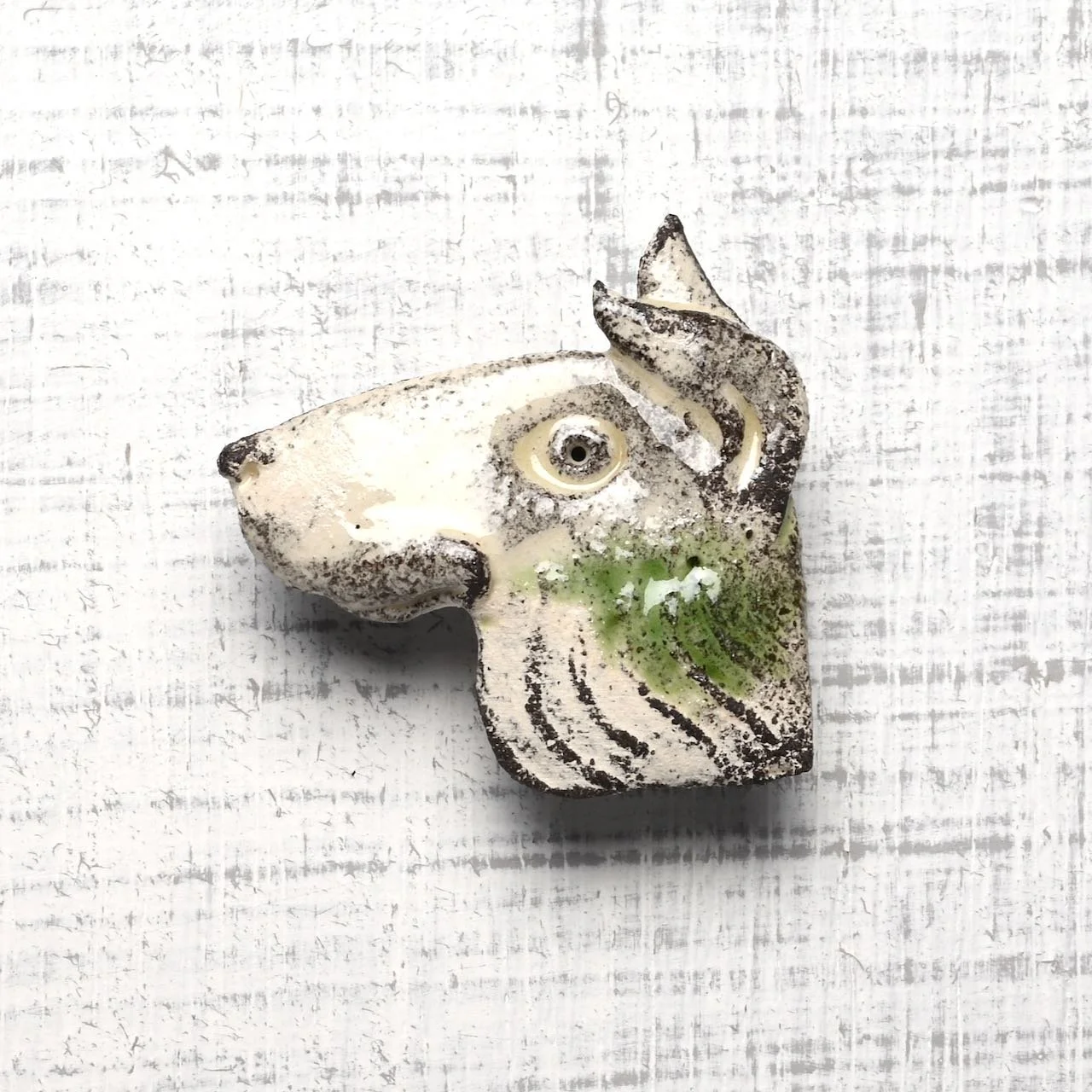 An original hand-modelled ceramic brooch by Jeremy James. This is a unique piece made by Jeremy James in his Derbyshire studio. Pin or button clasp on the reverse.