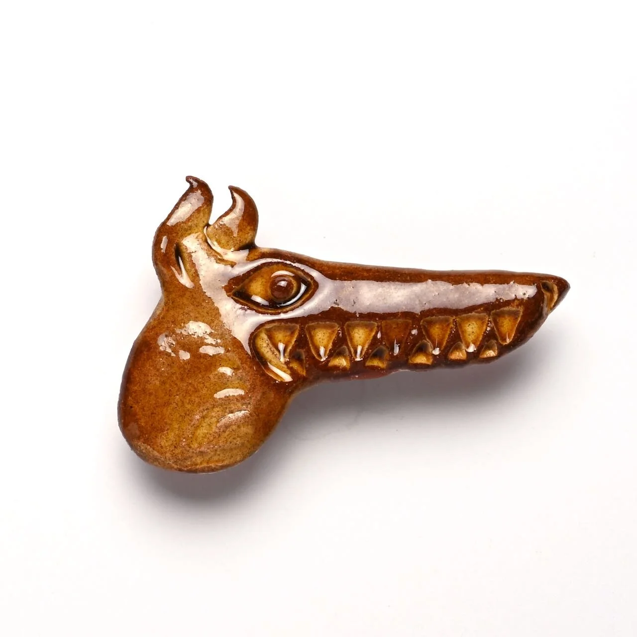 An original hand-modelled ceramic brooch by Jeremy James. This is a unique piece made by Jeremy James in his Derbyshire studio. Pin or button clasp on the reverse.