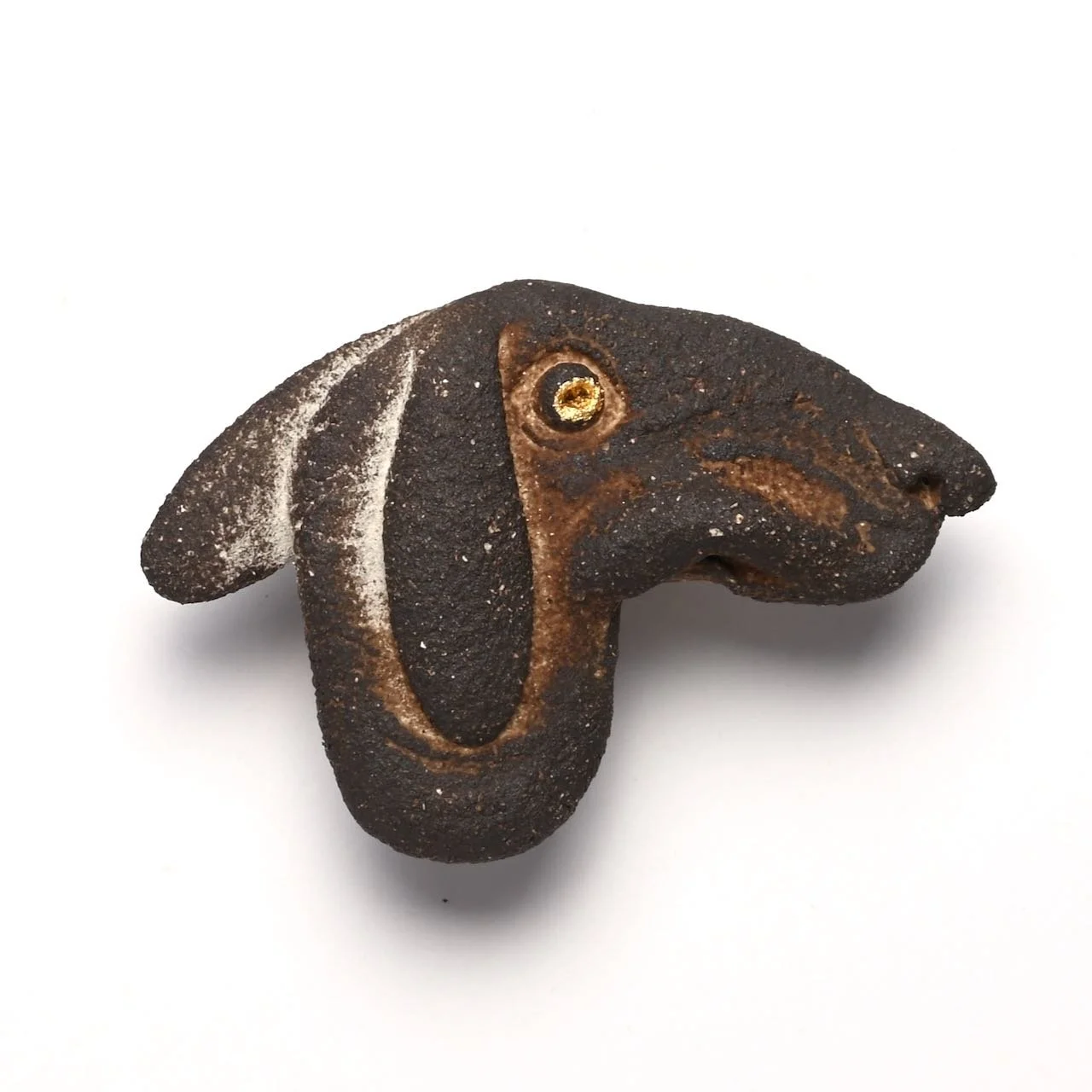An original hand-modelled ceramic brooch by Jeremy James. This is a unique piece made by Jeremy James in his Derbyshire studio. Pin or button clasp on the reverse.