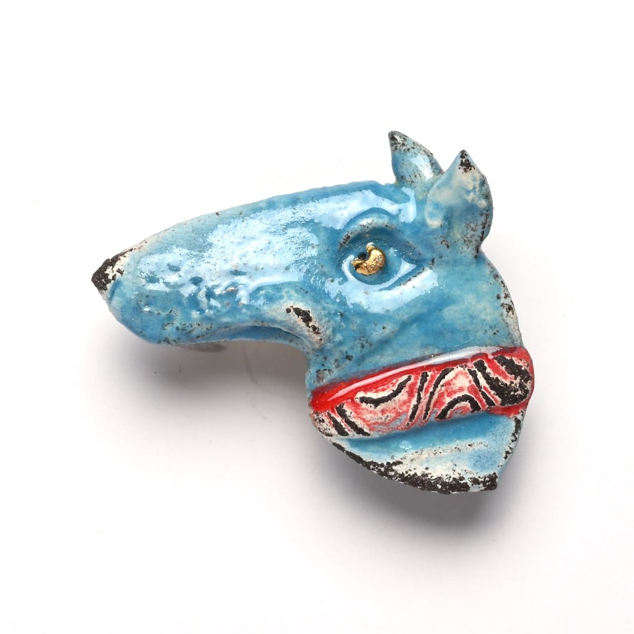 An original hand-modelled ceramic brooch by Jeremy James. This is a unique piece made by Jeremy James in his Derbyshire studio. Pin or button clasp on the reverse.